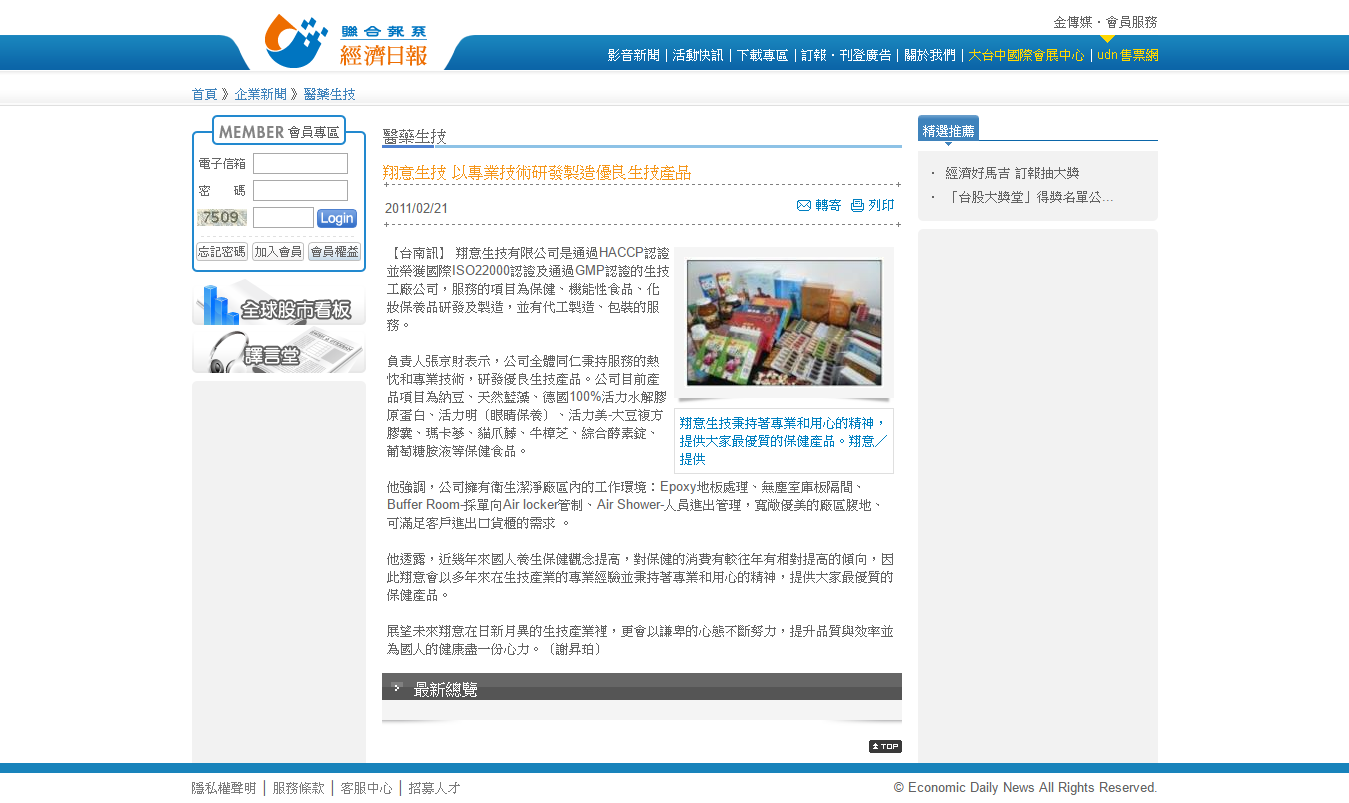 2011-02-21 經濟日報 翔意生技有限公司
